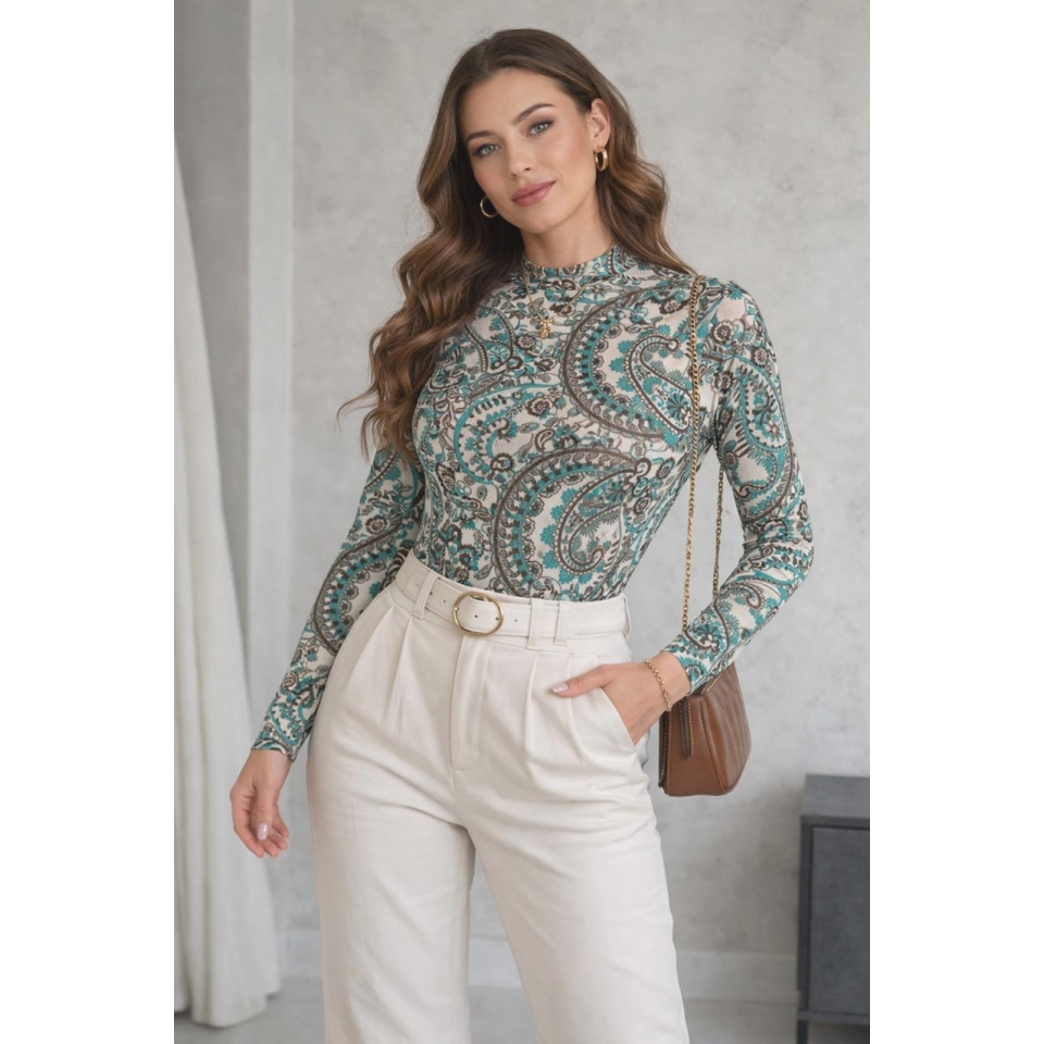 Possui mangas longas que equilibram a transparência do tecido, trazendo um toque elegante e sofisticado ao visual. O tule leve e ajustado ao corpo proporciona conforto e caimento impecável, enquanto a estampa em verde adiciona frescor e personalidade à peça. Ideal para composições estilosas, transitando com facilidade entre produções casuais e looks mais elaborados para a noite.