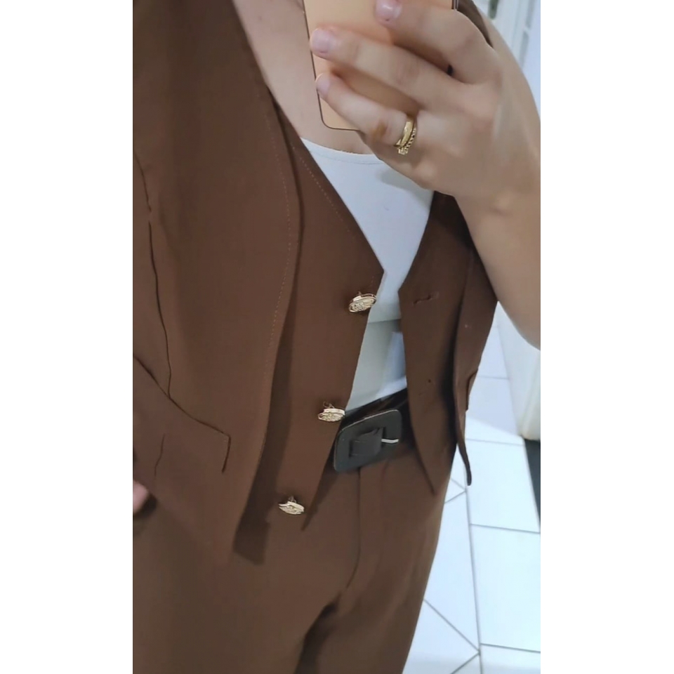 Este conjunto combina elegância e conforto. O tecido proporciona um toque macio e fluído,garantindo resistência e durabilidade. O colete tem um corte refinado que valoriza a silhueta, enquanto a calça possui um caimento impecável, ideal para quem busca um visual sofisticado sem abrir mão do bem-estar.Perfeito para ocasiões especiais ou para elevar o estilo do dia a dia.